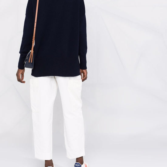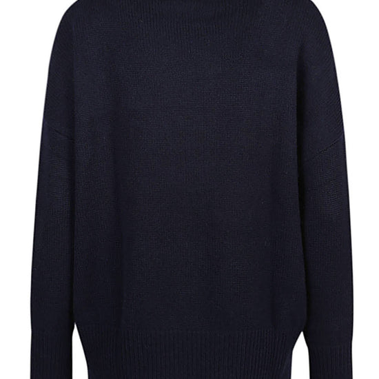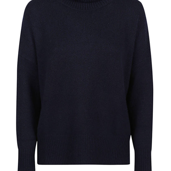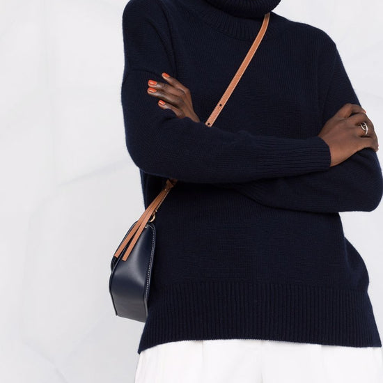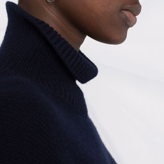 Navy cashmere fine knit roll neck long sleeves ribbed cuffs ribbed hem  heidi cashmere turtle-neck sweater