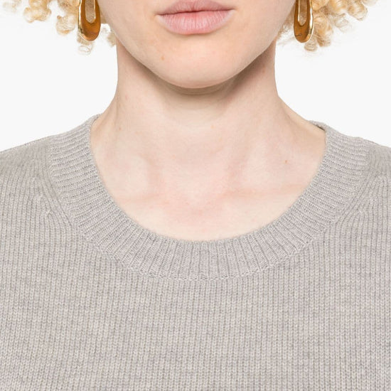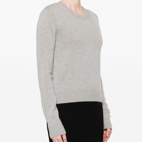 Light grey cashmere knitted construction mélange effect crew neck long sleeves ribbed cuffs and hem unlined mable cashmere crewneck sweater
