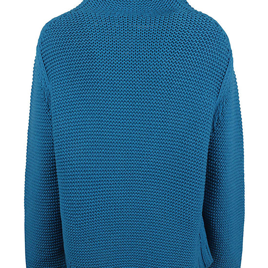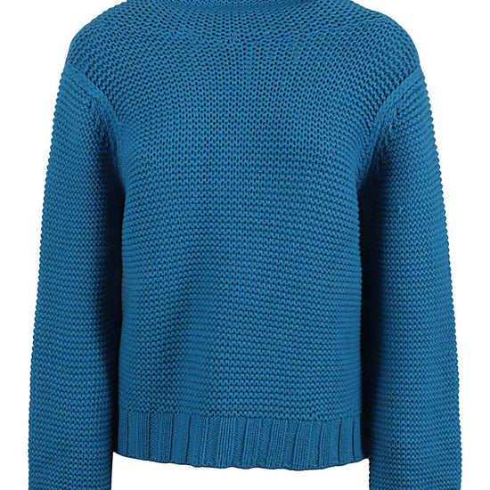 High neck sweater bluette, ovetto model, descended shoulder and large sleeve, over -weave. maglione c alto wool blend high neck jumper size and fit - this piece fits true to size. we recommend you get your regular size. model is 1,75m / 5ft 8in wearing size 40 (it)