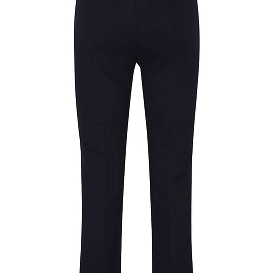 Blue flared black trousers with internally logged elastic waistband. flared cropped trousers size and fit - this piece fits true to size. we recommend you get your regular size. model is 1,75m / 5ft 8in wearing size 40 (it)