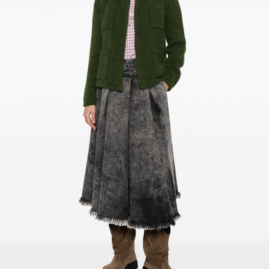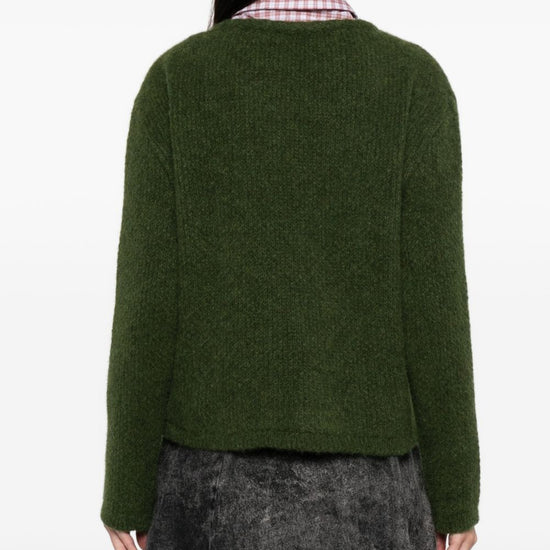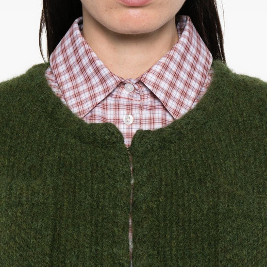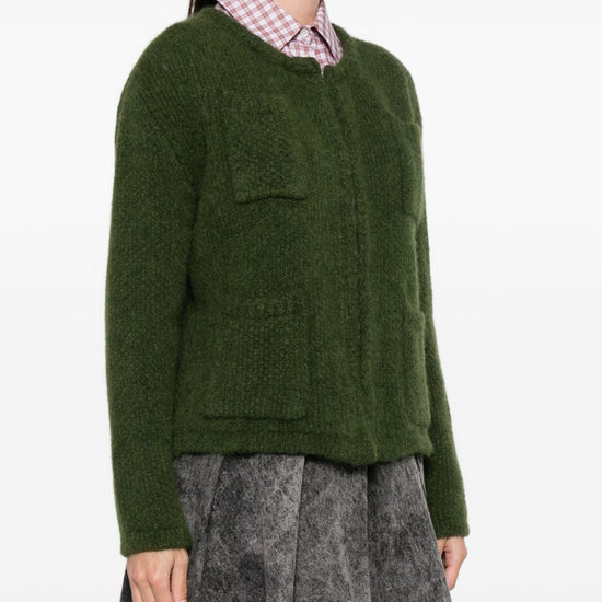 Green two front pockets round neck long sleeves front fastening