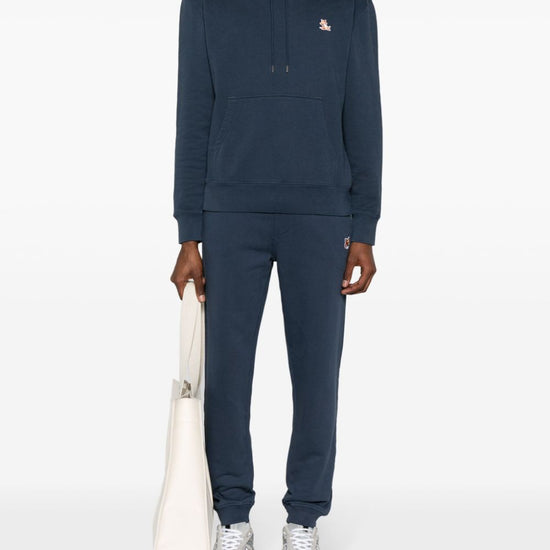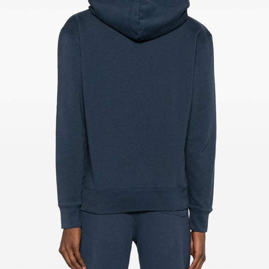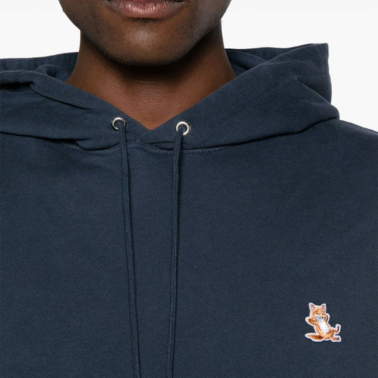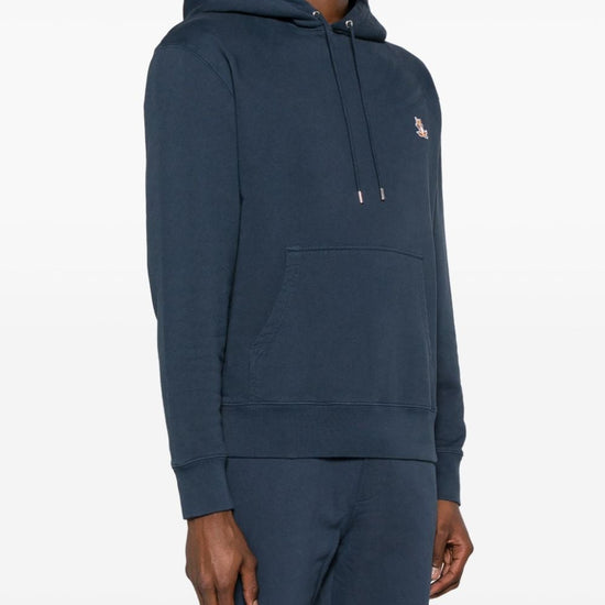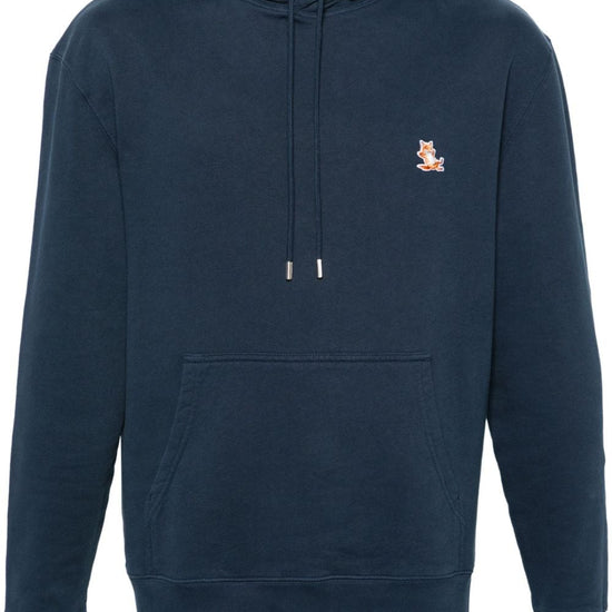 Indigo blue cotton knitted construction signature chillax fox motif drawstring hood long sleeves ribbed cuffs and hem front pouch pocket straight hem french terry lining chillax patch cotton hoodie size and fit - this piece fits true to size. we recommend you get your regular size. model is 1,84m / 6ft 1in wearing size m