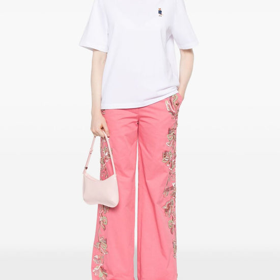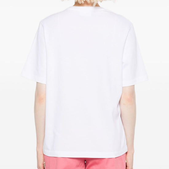 White short sleeves crew neck embroidered detail fox motif cotton material dressed fox cotton t-shirt