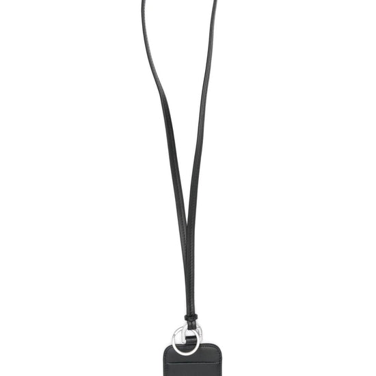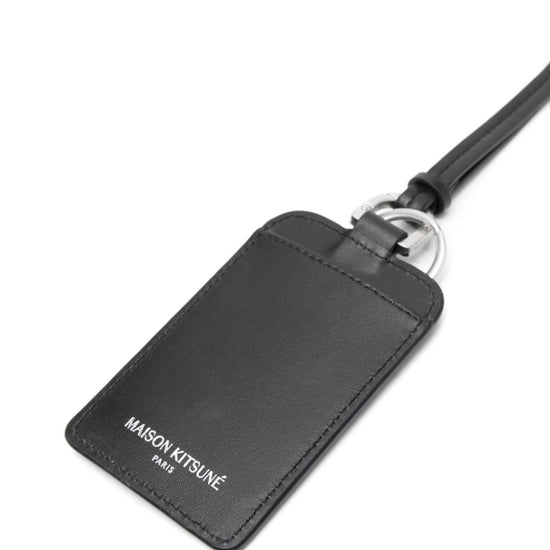 Black calf leather smooth grain detachable neck strap card slots fox head plaque to the front logo stamp to the rear silver-tone hardware fox head leather neck cardholder size and fit - width 2,56 in / 6,5 cm