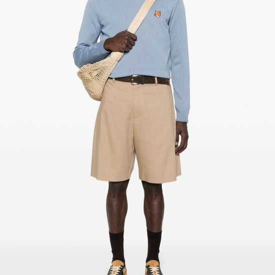 ribbed cuffs and hem fox head wool crewneck jumper