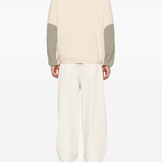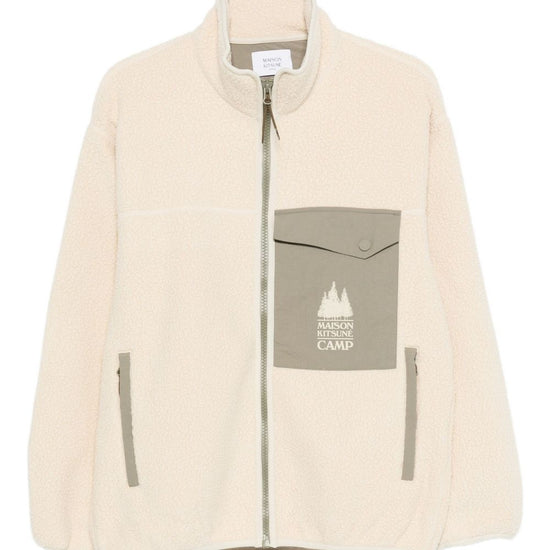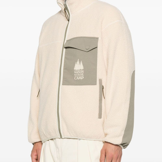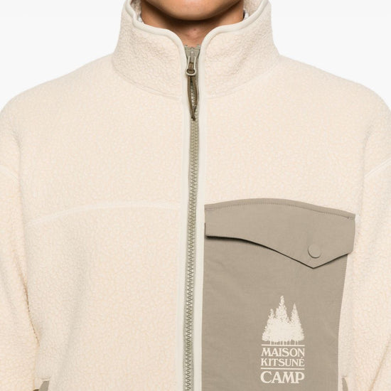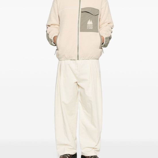 Light beige zip fastening chest pocket long sleeves high neck elasticated hem pile blouson jacket