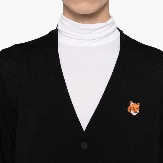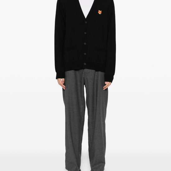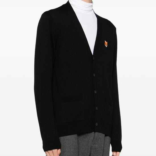 two front patch pockets fox head wool cardigan
