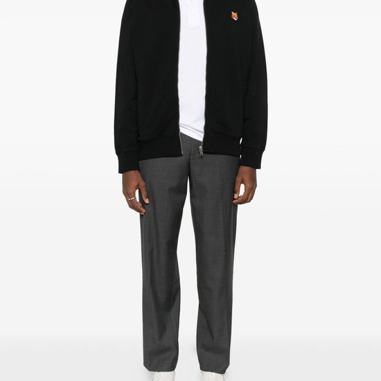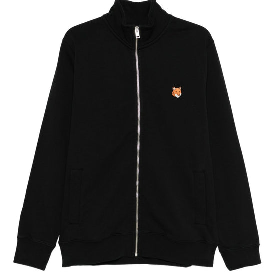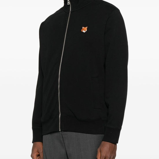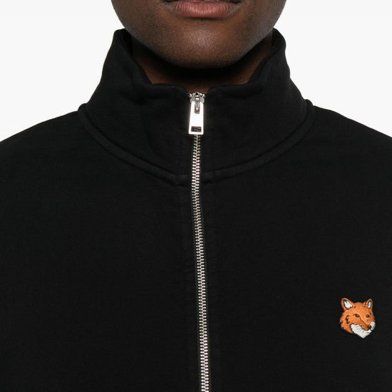 Black fox motif zip fastening high neck long sleeves welt pockets fox head cotton zipped sweatshirt