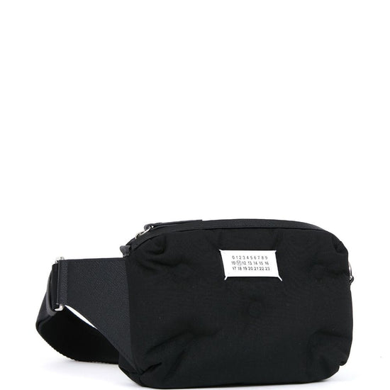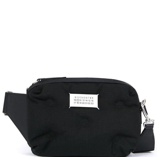 Black silver-tone hardware logo patch to the front adjustable waist strap rear zip-fastening pocket top zip fastening main compartment glam slam nylon camera bag