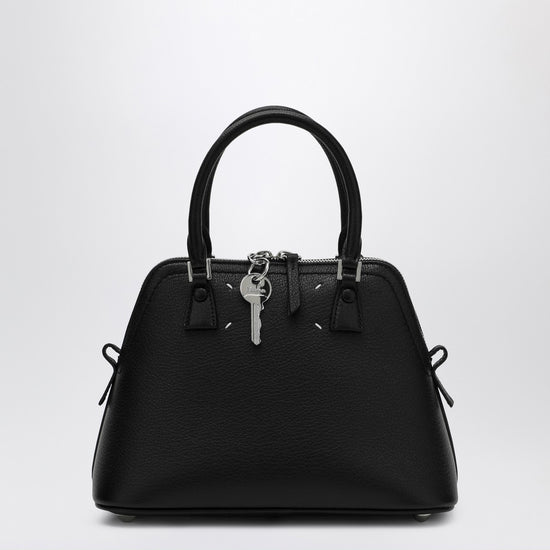 Mini bag by maison margiela in black leather, characterized by metallic details, two top handles, removable and adjustable shoulder strap, zip closure, label with numeric signature on the front, metallic feet on the base, keychain with lock and key, and four stitches on the back. size and fit - width 18 cm x height 26 cm x depth 13 cm adjustable shoulder strap length min 27 cm - max 52 cm handle drop: 10 cm
