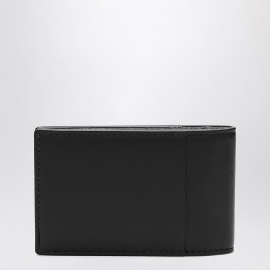 Maison margiela black leather cardholder with contrasting silver interior, featuring a snap button closure, card slots inside, one card slot, printed numeric logo inside, and printed lettering logo on the front. size and fit - width 11 cm x height 7 cm x depth 1 cm