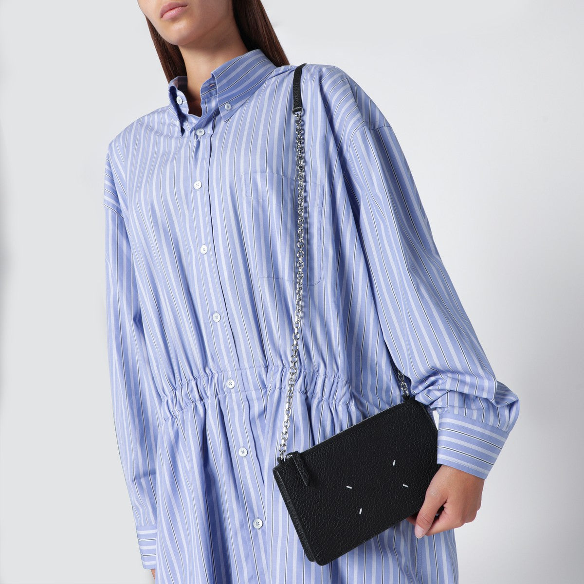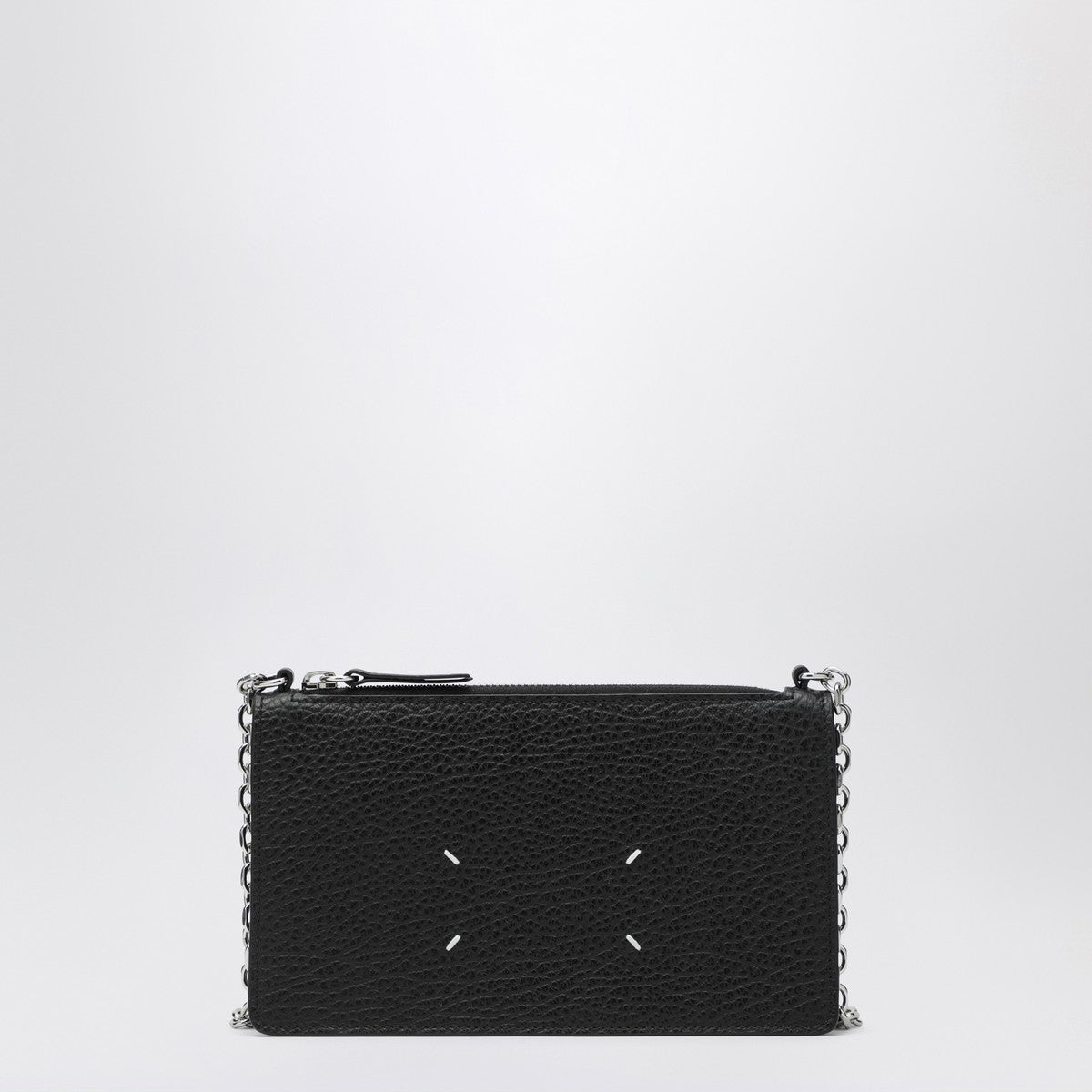 Maison margiela cardholder in black grained leather, featuring four stitches detail, removable chain shoulder strap, zip closure, and credit card slots inside. size and fit - width 19,5 cm x height 11,5 cm x depth 1,5 cm sshoulder strap length 100 cm