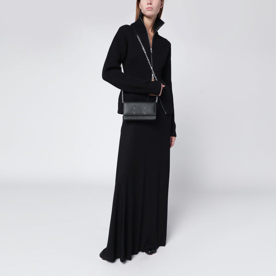 Maison margiela''s black grained leather wallet, characterized by the four stitches detail, removable chain shoulder strap, front flap with magnetic closure, one zip pocket, credit card slots inside, and a flat pocket on the back. size and fit - width 19,5 cm x height 11,5 cm x depth 1,5 cm sshoulder strap length 100 cm