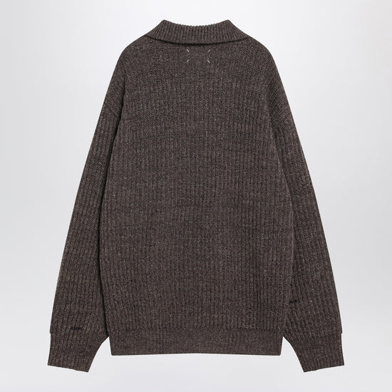 Maison margiela''s brown ribbed wool blend sweater, featuring a zip collar, raglan sleeves, ribbed cuffs and hem, and an oversized fit. size and fit - model wears size m model measurements: height: 187 cm chest: 102 cm waist: 76 cm hips: 92 cm