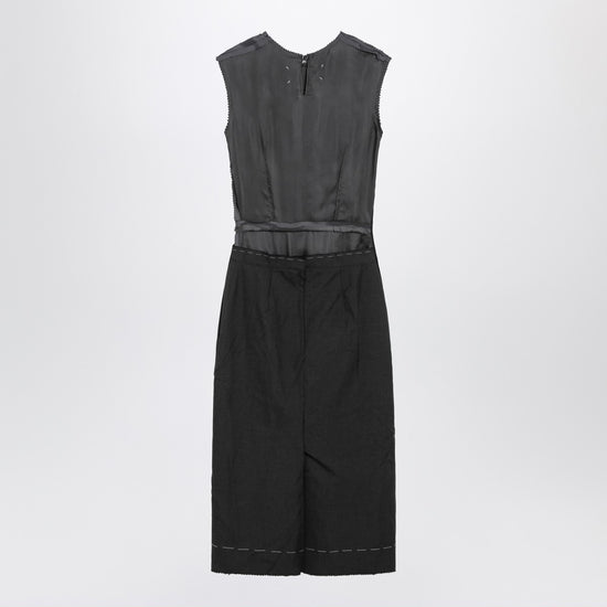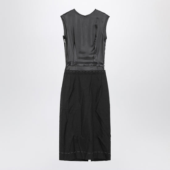 Sleeveless dress by maison margiela in wool and viscose twill blend, featuring a round neckline, deconstructed bodice with raw-cut edges and visible darts, fitted skirt with contrasting basting stitches, knee-length silhouette, and signature four stitches on the back. size and fit - model wears size 40 it model measurements: height: 178 cm chest: 83 cm waist: 63 cm hips: 91 cm