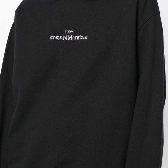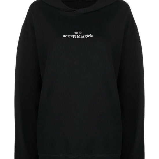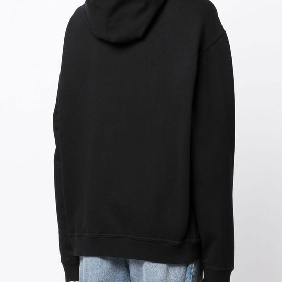 Black cotton logo print at the chest signature four-stitch logo classic hood long sleeves front pouch pocket drop shoulder ribbed cuffs ribbed hem logo cotton hoodie