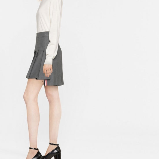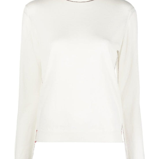 Cloud white wool ribbed detailing contrast stitching roll neck long sleeves straight hem turtleneck wool sweater size and fit - this piece fits true to size. we recommend you get your regular size. model is 1,75m / 5ft 8in wearing size s