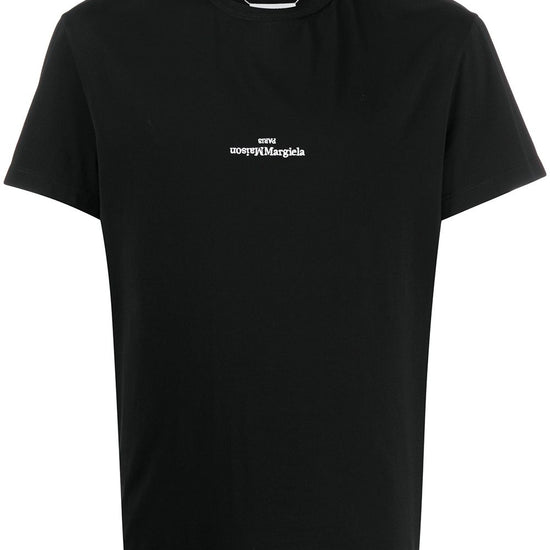 Black cotton embroidered logo to the front crew neck short sleeves straight hem logo cotton t-shirt