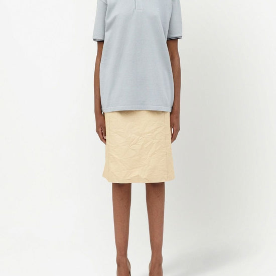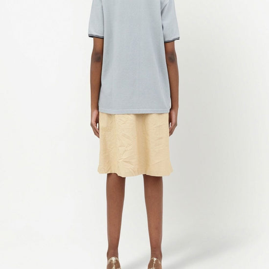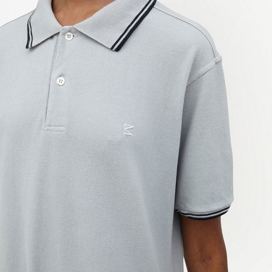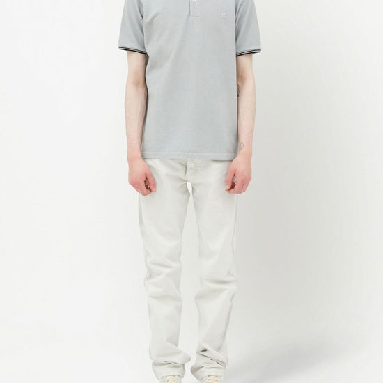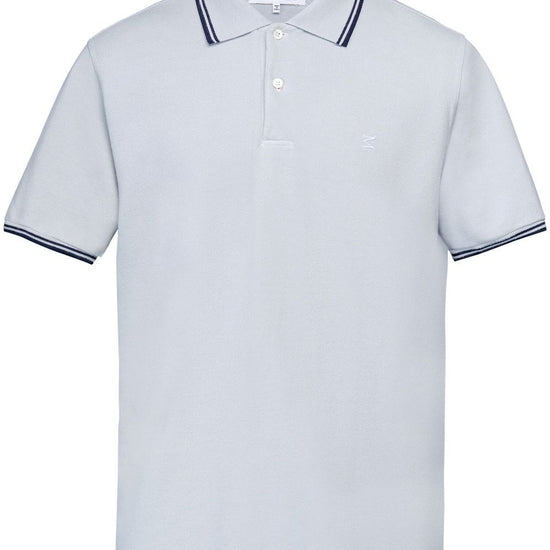 Cotton stripe-trim polo shirt from maison margiela featuring light grey, cotton, stripe trim, polo collar, front button placket, short sleeves and straight hem. profili contrasto, allungata cotton polo shirt size and fit - this piece fits true to size. we recommend you get your regular size. model is 1,75m / 5ft 8in wearing size s