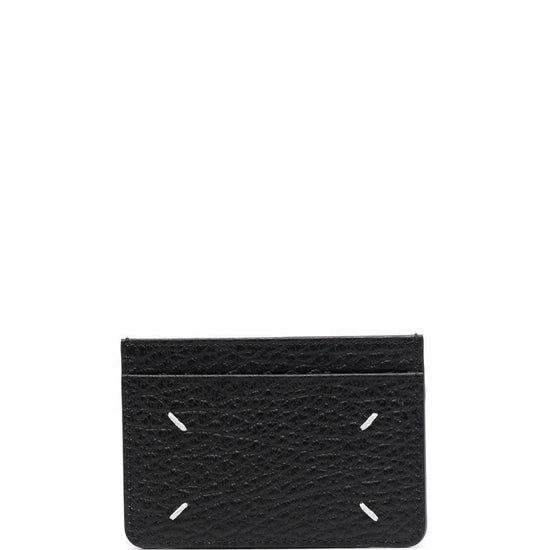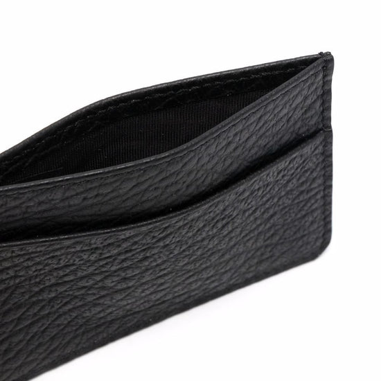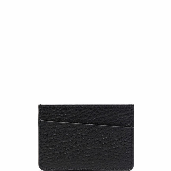 Black leather asymmetric card holder from maison margiela featuring grained texture, tonal stitching and card slots. leather credit holder size and fit - width 3,94 in / 10 cm