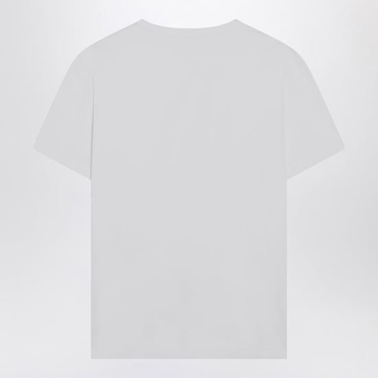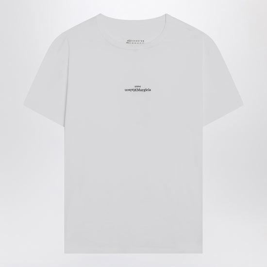 White cotton t-shirt by maison margiela, featuring a ribbed crew neck, short sleeves, distorted logo lettering on the front in contrast, and a regular fit. size and fit - model wears size 46 it model measurements: height: 187 cm chest: 102 cm waist: 76 cm hips: 92 cm