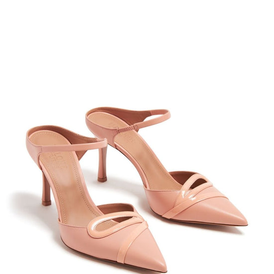 Powder pink leather pointed toe slip-on style branded footbed 90mm stiletto heel leather sole tacco 85, 2 cinturini bonnie 80 leather stiletto mules size and fit - heel 3,5 in / 9 cm