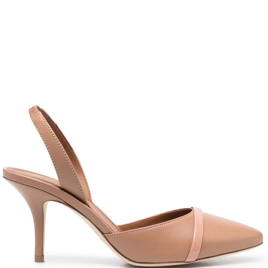 Marion 85 pumps from malone souliers featuring blush beige, calf leather, cut-out detailing, contrasting trim, pointed toe, branded insole, buckle-fastening slingback strap and 85mm stiletto heel. elsie 70 leather mules size and fit - heel 3,1 in / 8 cm
