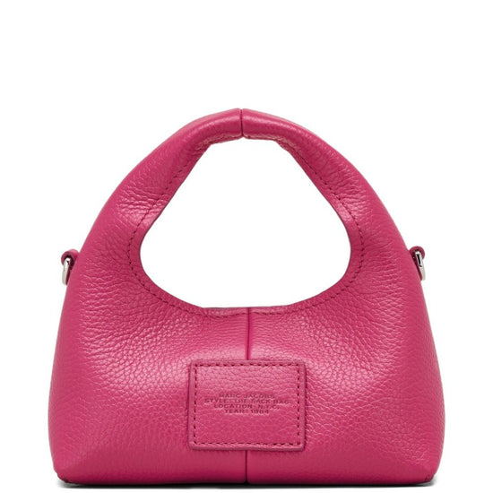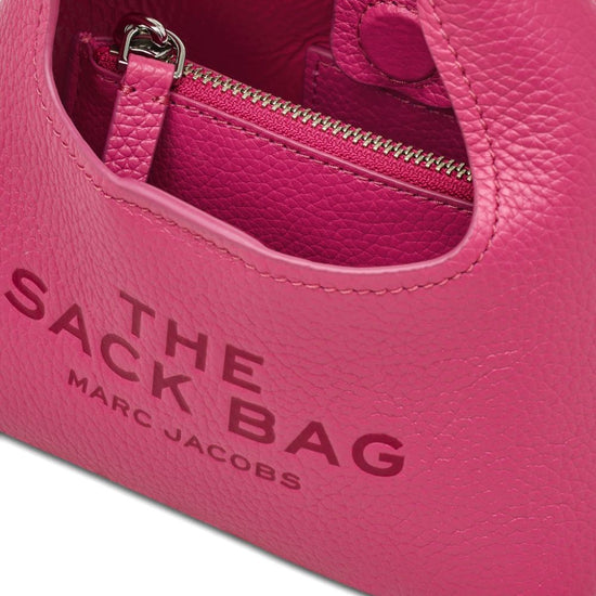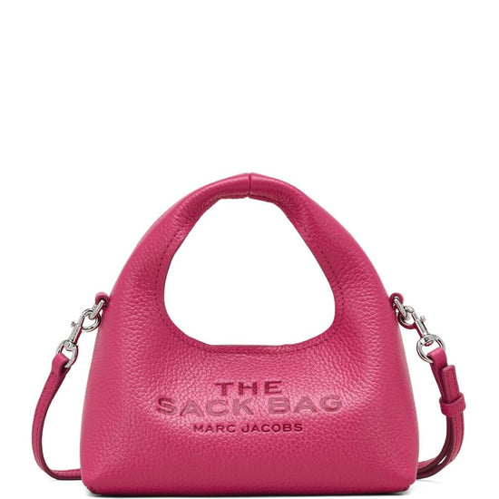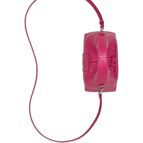 Raspberry pink top handle detachable strap zip fastening embossed lettering silver-tone hardware the crossbody sack micro