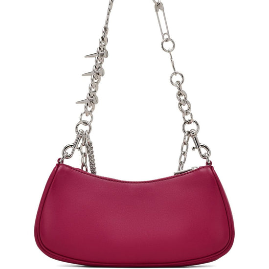 Lipgloss pink chain embellishment zip fastening top handle leather shoulder bag