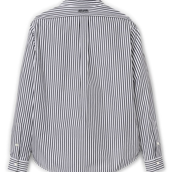 Black/white cotton vertical stripe pattern front button fastening mother-of-pearl buttons classic collar embroidered logo chest patch pocket long sleeves curved hem striped cotton shirt size and fit - this piece fits true to size. we recommend you get your regular size. model is 1,75m / 5ft 8in wearing size s