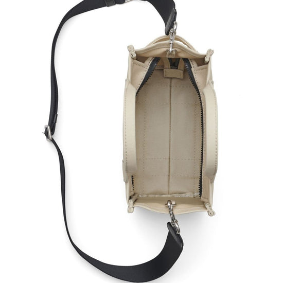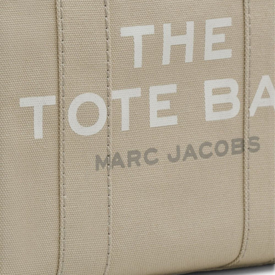 Beige canvas small the canvas tote bag from marc jacobs featuring logo print to the front, circular top handles and open top. the tote bag small canvas tote size and fit - width 10,24 in / 26 cm height 7,09 in / 18 cm depth 5,12 in / 13 cm handle 4,33 in / 11 cm strap 15,75 in / 40 cm.