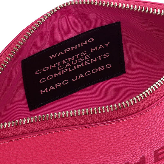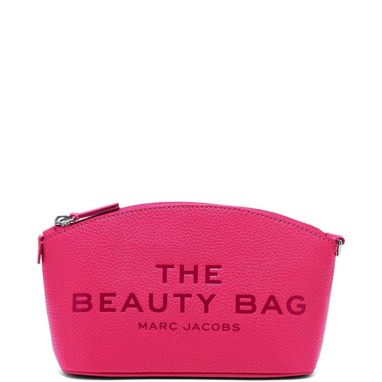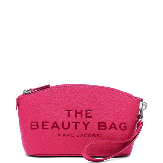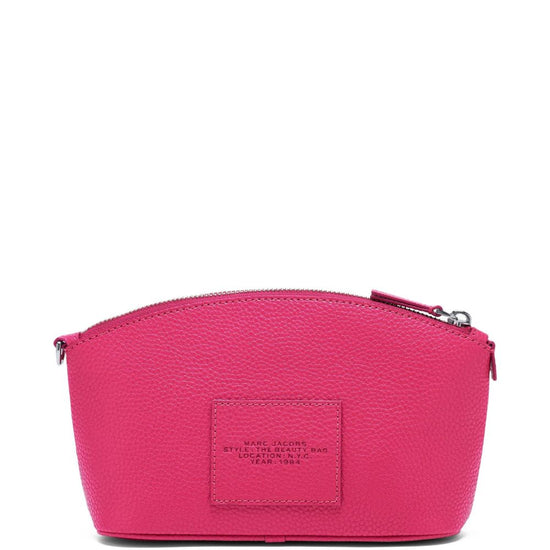 Raspberry pink pebbled leather zip fastening half-moon shape logo embossing detachable wrist strap the beauty bag size and fit - depth: 8.0 centimetres. length: 14.0 centimetres. width: 24.0 centimetres.