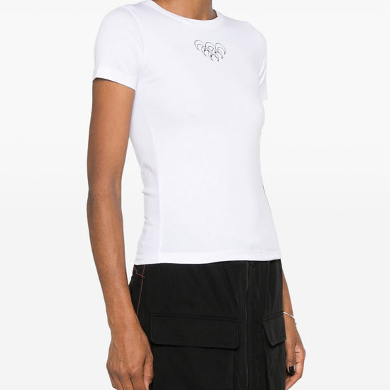 White organic cotton jersey texture crescent moon embroidery logo patch to the rear crew neck short sleeves straight hem moon cotton t-shirt