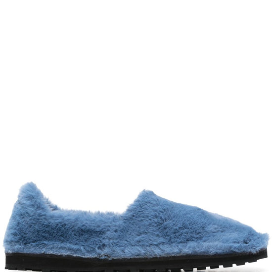 Cerulean blue round toe leather lining rubber tread sole faux fur slip-on loafers size and fit - heel 0,8 in / 2 cm