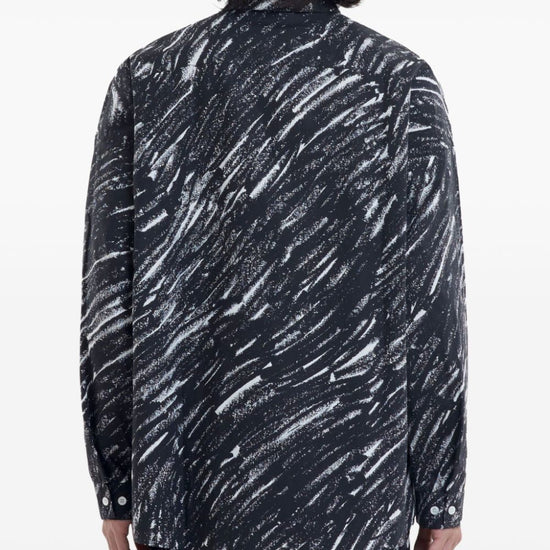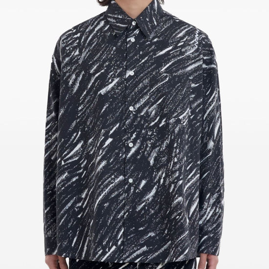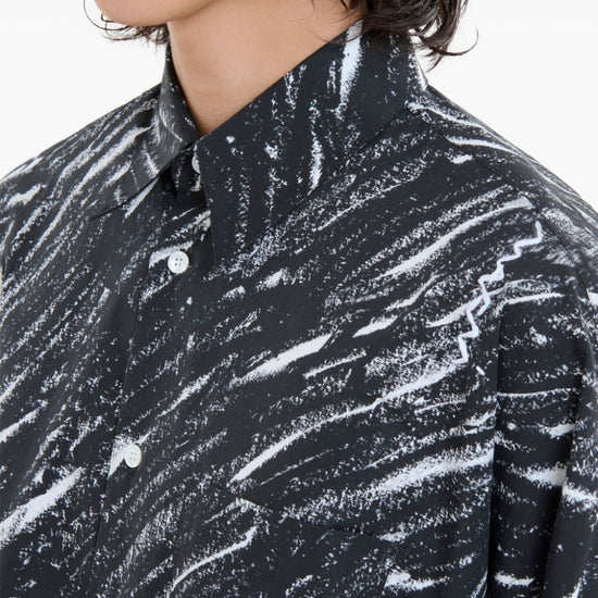 Black/white cotton poplin texture sketch-style print classic collar front button fastening drop shoulder long sleeves buttoned cuffs chest patch pocket straight hem printed cotton shirt size and fit - this piece fits true to size. we recommend you get your regular size. model is 1,84m / 6ft 1in wearing size 48 (it)