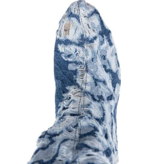 rubber outsole denim heel boots size and fit - heel 4,3 in / 11 cm; platform 1,6 in / 4 cm