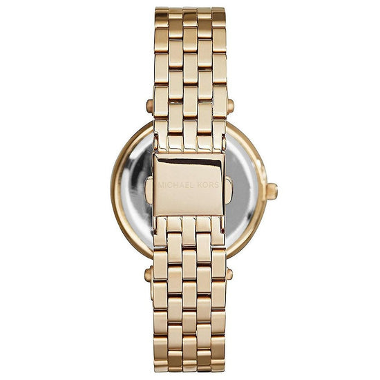 the ladies darci gold tone stainless steel michael kors watch mk3365 is a fantastic ladies watch. this watch has a 33mm stainless steel case with an analogue display. the watch has a gold dial with a gold stainless steel strap and is powered by quartz movement. the watch comes with a presentation box and is water resistant up to 50 meters.