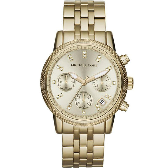 - ladies ritz gold tone stainless steel chronograph micheal kors watch mk5676