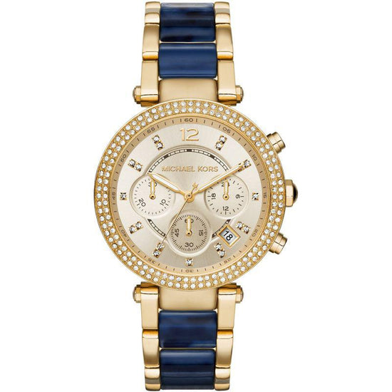 - ladies parker two tone blue stainless steel chronograph micheal kors watch mk6238