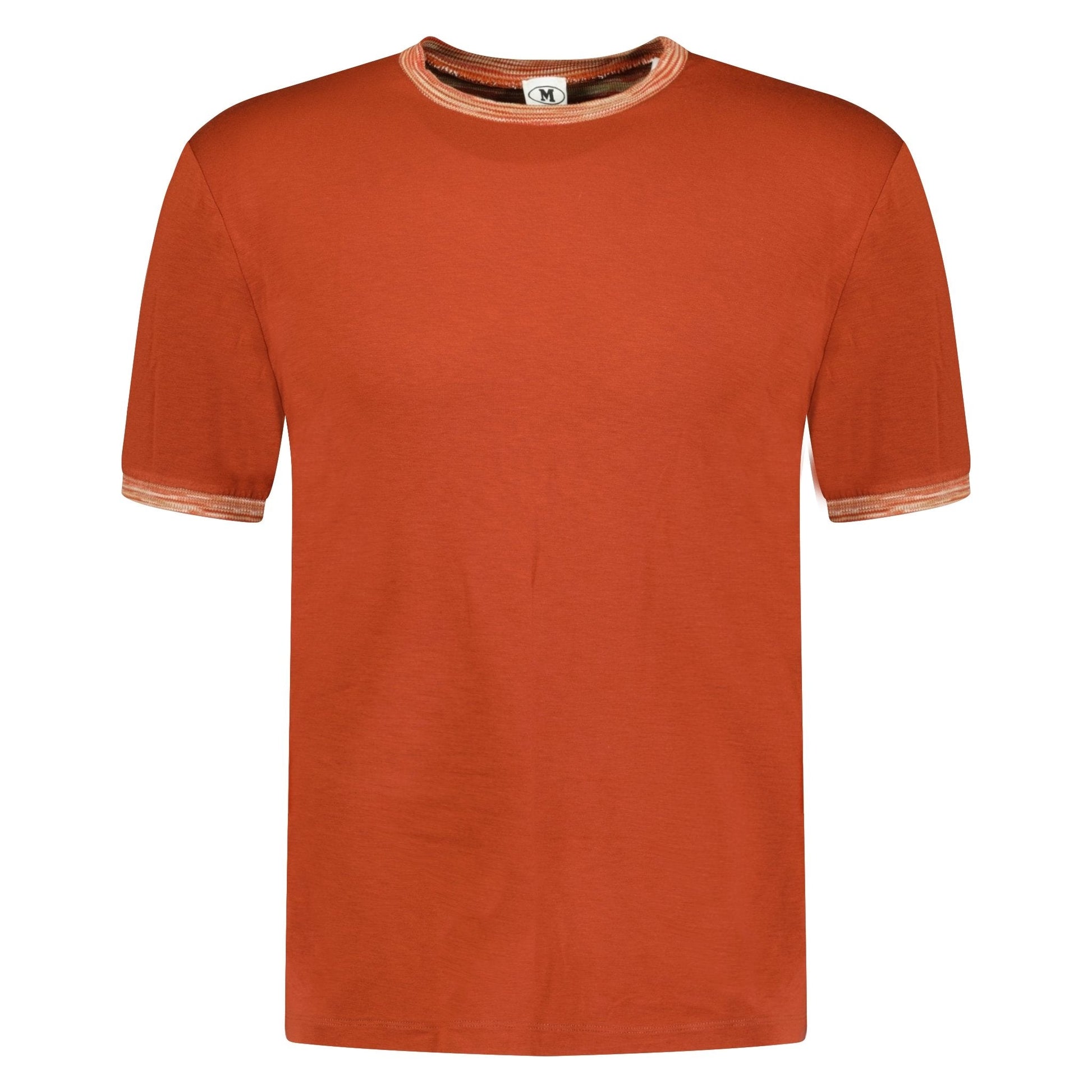 make a statement with the missoni contrast collar t-shirt in burnt orange. this premium quality t-shirt features a bold burnt orange colour, creating a striking contrast against the white collar. the iconic missoni logo adds a touch of branding to this already stylish piece. made from soft, comfortable fabric, this t-shirt is perfect for casual wear or for dressing up for a special occasion. upgrade your wardrobe with the missoni contrast collar t-shirt in burnt orange.