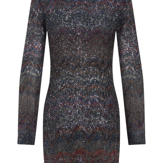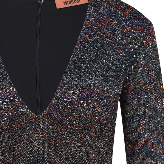 Black zigzag knit long sleeves v-neck sequin embellishment the item you receive may differ slightly from the item photographed. this is due to the artisanal nature with which all missoni products are constructed. v-necked short dress