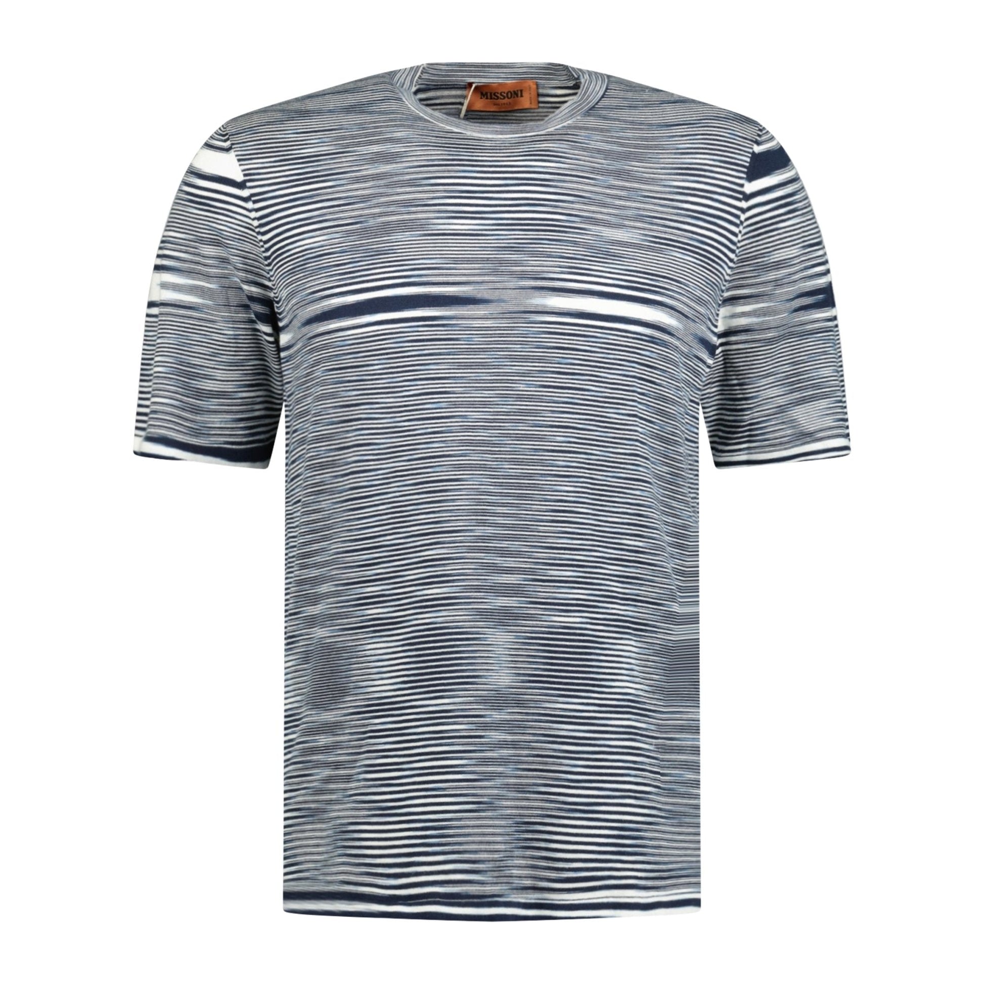 step up your fashion game with the missoni knitted stripe t-shirt in a classic white and navy colourway. this iconic piece from missoni showcases their signature knitted stripe pattern, delivering a timeless and sophisticated look. crafted with meticulous attention to detail, this t-shirt offers a perfect blend of comfort and style. made from high-quality materials, it provides a soft and luxurious feel against the skin. whether you're dressing up or going for a casual vibe, the missoni knitted stripe t-shirt is a versatile addition to any wardrobe. shop now and elevate your fashion ensemble with this coveted white and navy striped t-shirt from missoni.