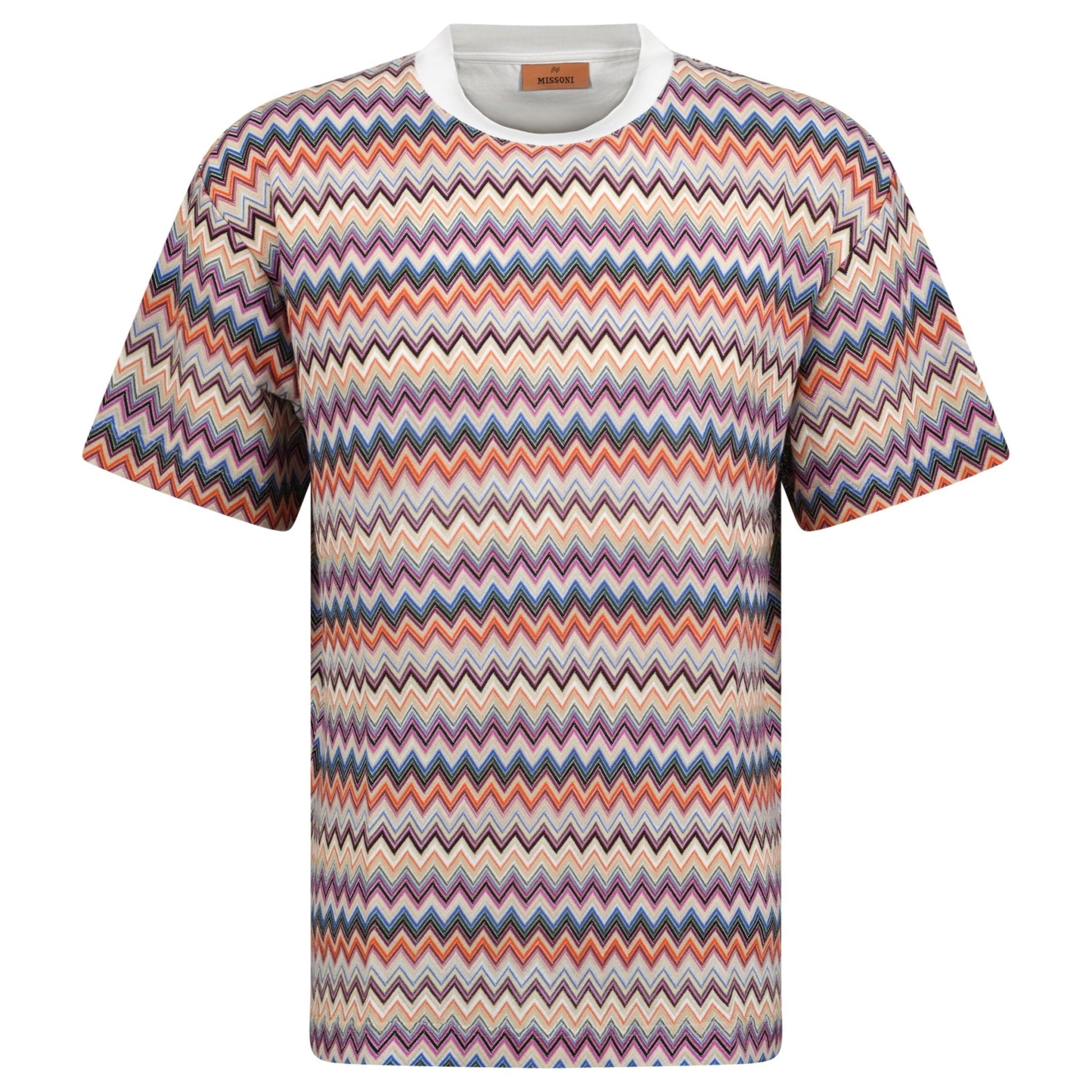 elevate your wardrobe with the missoni knitted zig zag t-shirt in multi colour. crafted from a luxurious blend of 68% cotton and 32% viscose, this t-shirt offers both comfort and a statement look. the vibrant zigzag design embodies missoni’s signature aesthetic, making this piece a bold addition to any casual ensemble. the lightweight, breathable fabric ensures all-day comfort, while the short-sleeved silhouette is perfect for layering or wearing on its own.
