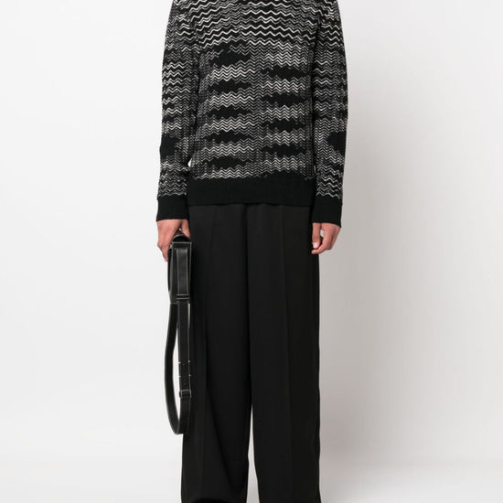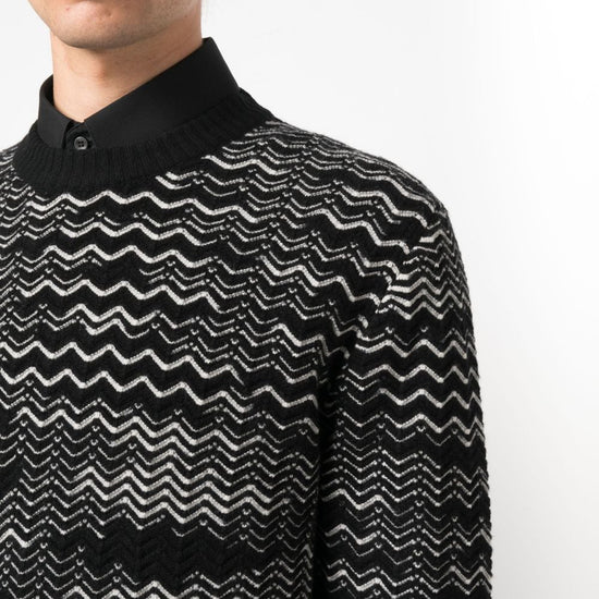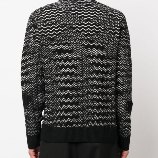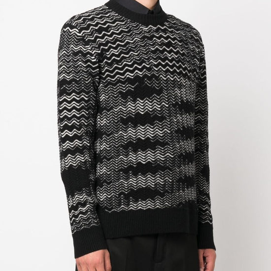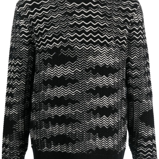 Zig zag-pattern jumper from missoni featuring black/white, wool blend, signature zigzag woven design, ribbed band collar, long sleeves, crew neck and ribbed cuffs and hem. the item you receive may differ slightly from the item photographed. this is due to the artisanal nature with which all missoni products are constructed.. logo, bordo collo in contrasto a righe chevron wool blend sweater size and fit - this piece fits true to size. we recommend you get your regular size. model is 1,84m / 6ft 1in wearing size 48 (it)
