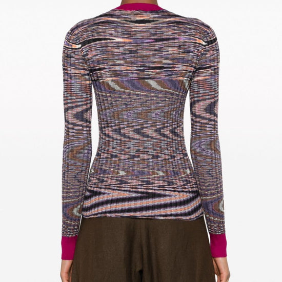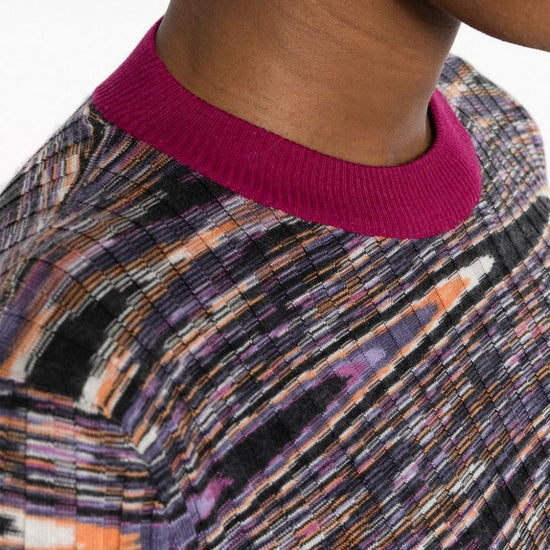 Abstract-pattern cashmere-blend jumper from missoni featuring multicolour, cashmere-silk blend, knitted construction, ribbed knit, abstract pattern print, contrasting trim, crew neck, long sleeves and straight hem. the item you receive may differ slightly from the item photographed. this is due to the artisanal nature with which all missoni products are constructed.. dolcevita m/l cashmere and silk blend sweater size and fit - this piece fits true to size. we recommend you get your regular size. model is 1,75m / 5ft 8in wearing size 40 (it)