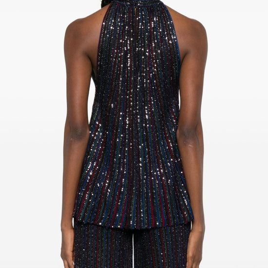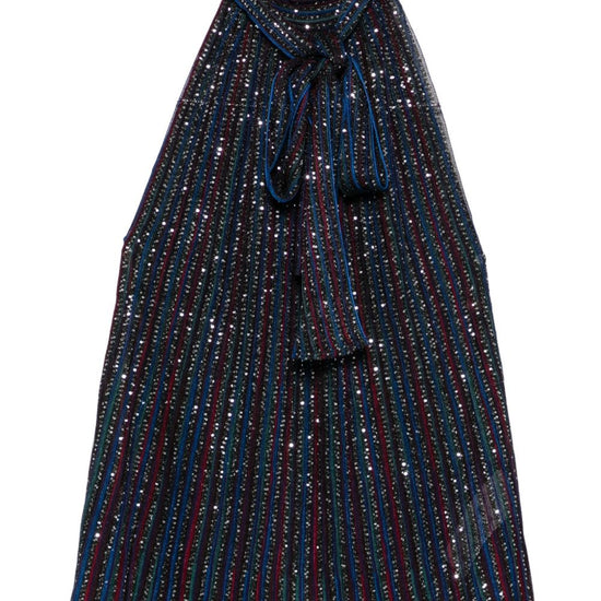 Multicolor silk blend stripe detailing tie detail high neck sleeveless sequined tank top