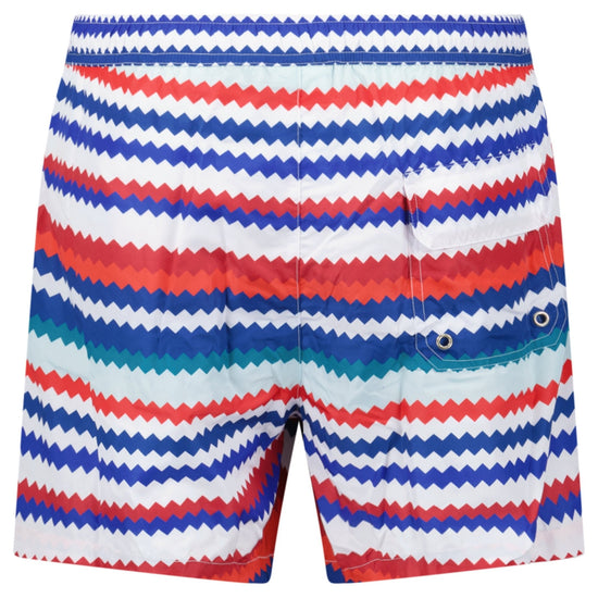 make a splash with missoni zig zag swim shorts in vibrant multi red. crafted with the iconic zigzag pattern, these shorts exude bold style and italian luxury. with a comfortable fit and eye-catching design, they're perfect for poolside lounging or beach outings. elevate your swimwear collection with missoni's signature flair.