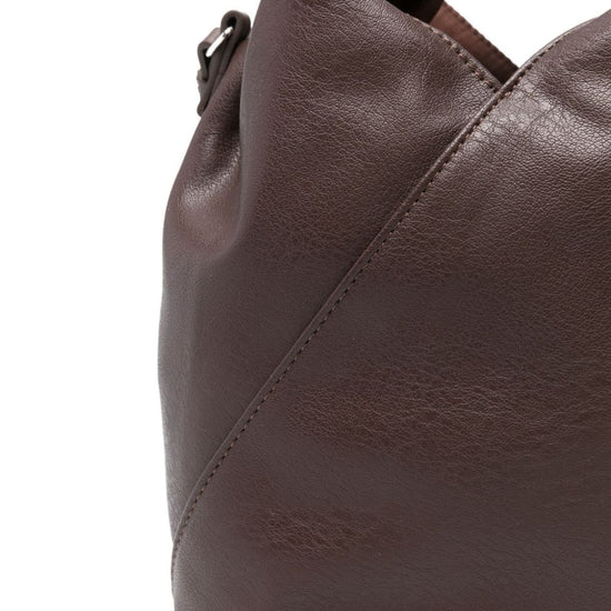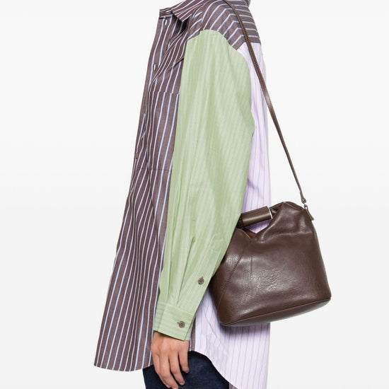 Brown single top handle diagonal seam detail detachable shoulder strap main compartment japanese crossbody bag