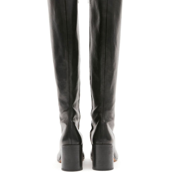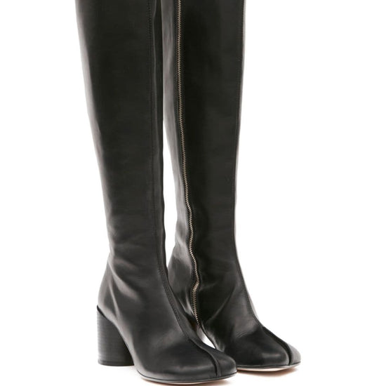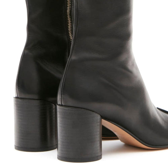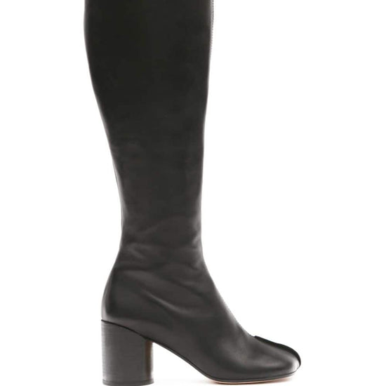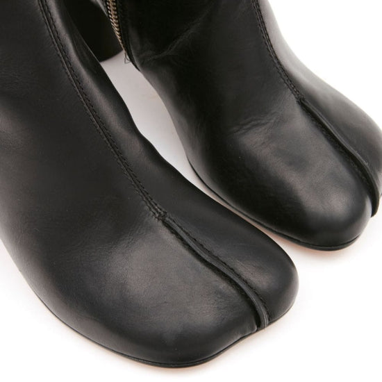 Black calf leather signature tabi toe side zip fastening mid heel leather boots