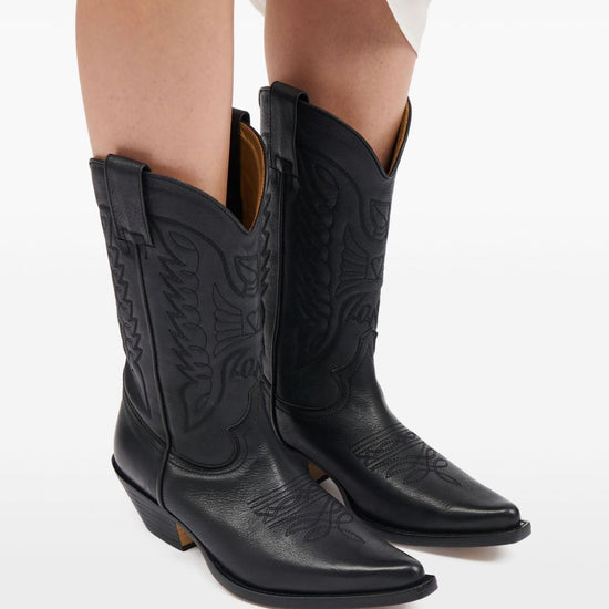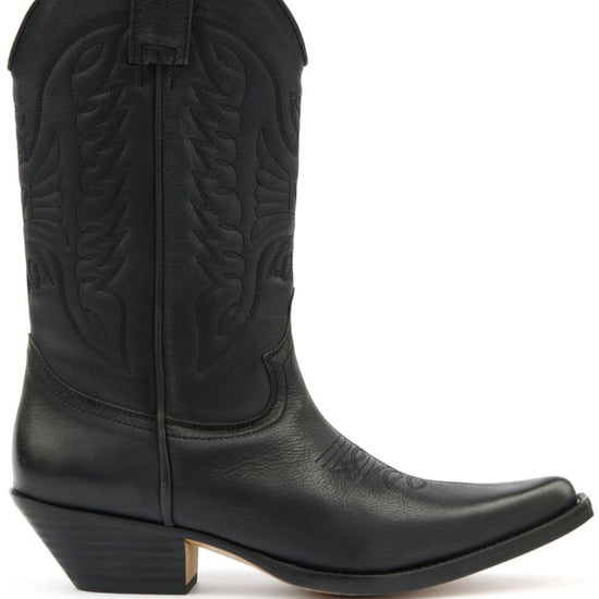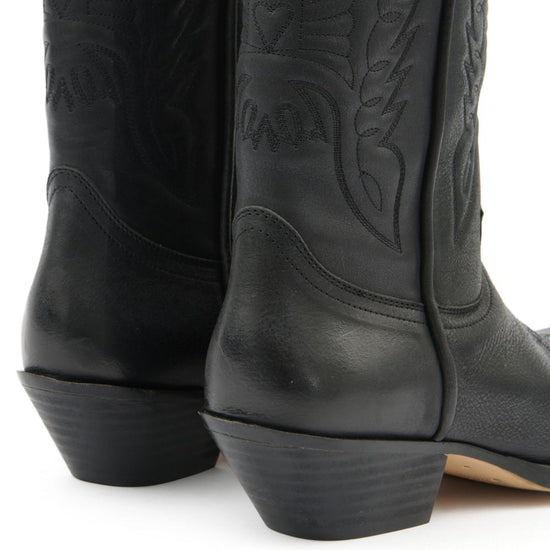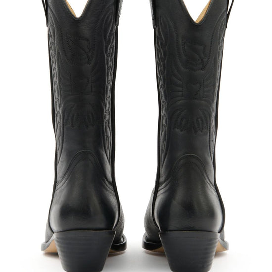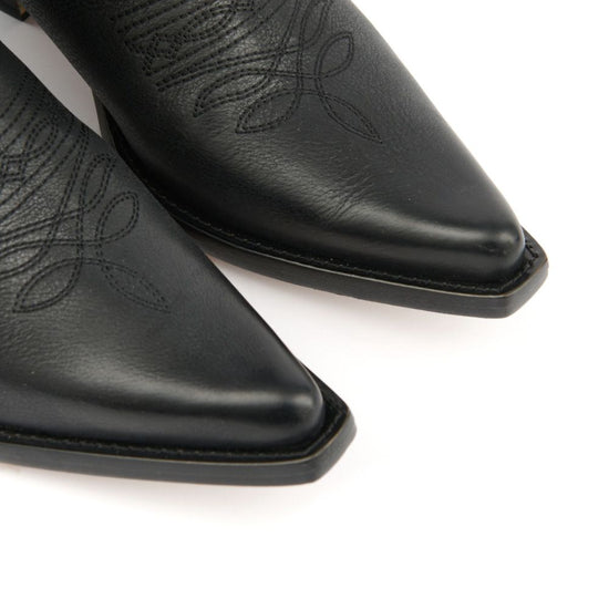 Black pointed toe double pull-tab at the opening leather sole florence leather boots size and fit - heel 2 in / 5 cm